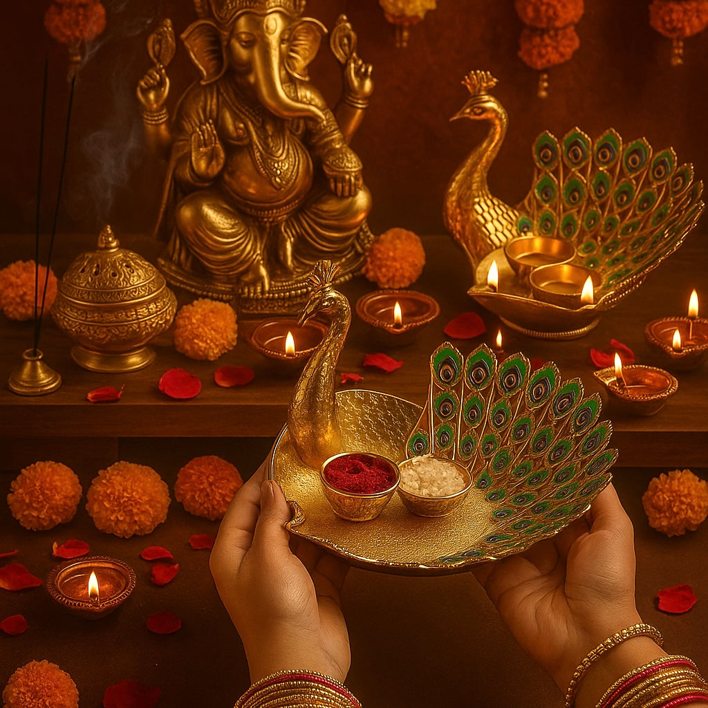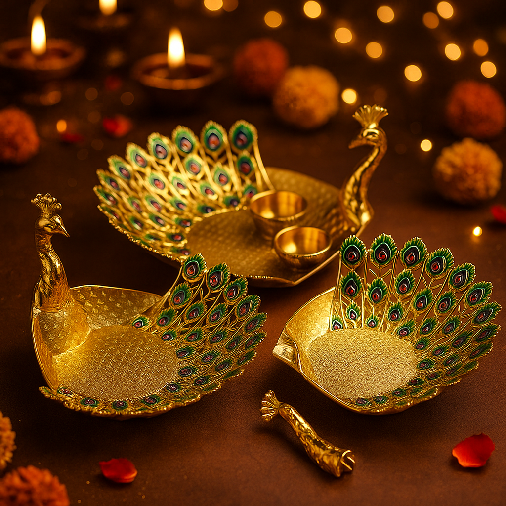 Heritage Peacock Pooja Plate | BUY 1 GET 1 FREE- 2 Plates